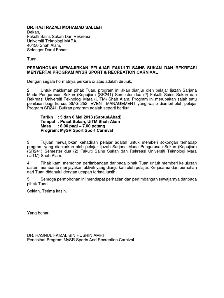 Contoh Surat Rasmi Permohonan Untuk Menambah Subjek Kursus Kerana Tamat Tempoh Add Drop Pdf